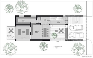 Hier konzentriert sich der Wohnraum um ein zentrales Atrium.