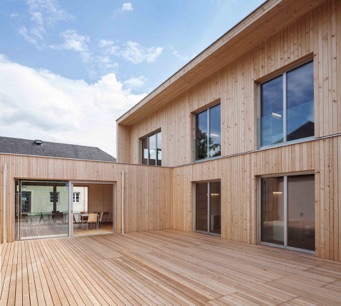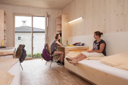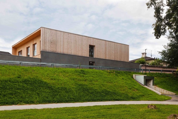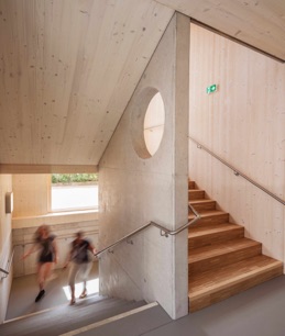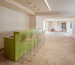 Dem Themenbereich Holzbau wurde in der Planung und Ausführung sowohl in den äußeren wie inneren Bauteilen ein hoher Stellenwert eingeräumt. Das Gebäude ist ab der Kellerdecke als reines Massivbauwerk aus Brettsperrholzwänden und Decken errichtet. Auch die oberirdischen Bauteile wie Liftschacht und Stiegenhaus wurden aus diesem Material errichtet. Fortgesetzt wurde diese konsequente Haltung auch in den Oberflächen der Innenbauteile wie Böden, Wandverkleidungen, abgehängten Decken und der Einrichtung. Holz als ökologischer Baustoff ist somit in allen Bereichen für die Schüler einer landwirtschaftlichen Schule mit allen Sinnen in einer zeitgemäßen Form erfahrbar!
