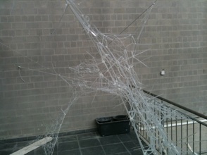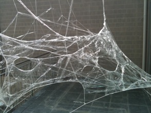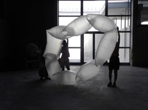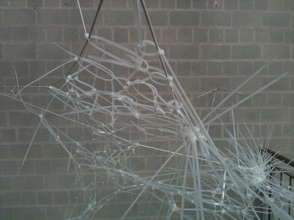 Experimentieren mit unterschiedlichen Materialien und Baustoffen (z. B.: Stoff, Schnur, Holzlatten, Kabelbinder, Folien, Klebebänder etc.) zur Raumsimulation.